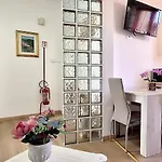 The accommodation features views of the inner courtyard and comprises a balcony, a sitting area, and a kitchen equipped with air conditioning and a washing machine. Visitors of this apartment will enjoy the comfort of a bathroom with bath sheets. Moreover, there is a bidet, a separate toilet, and a shower as well.